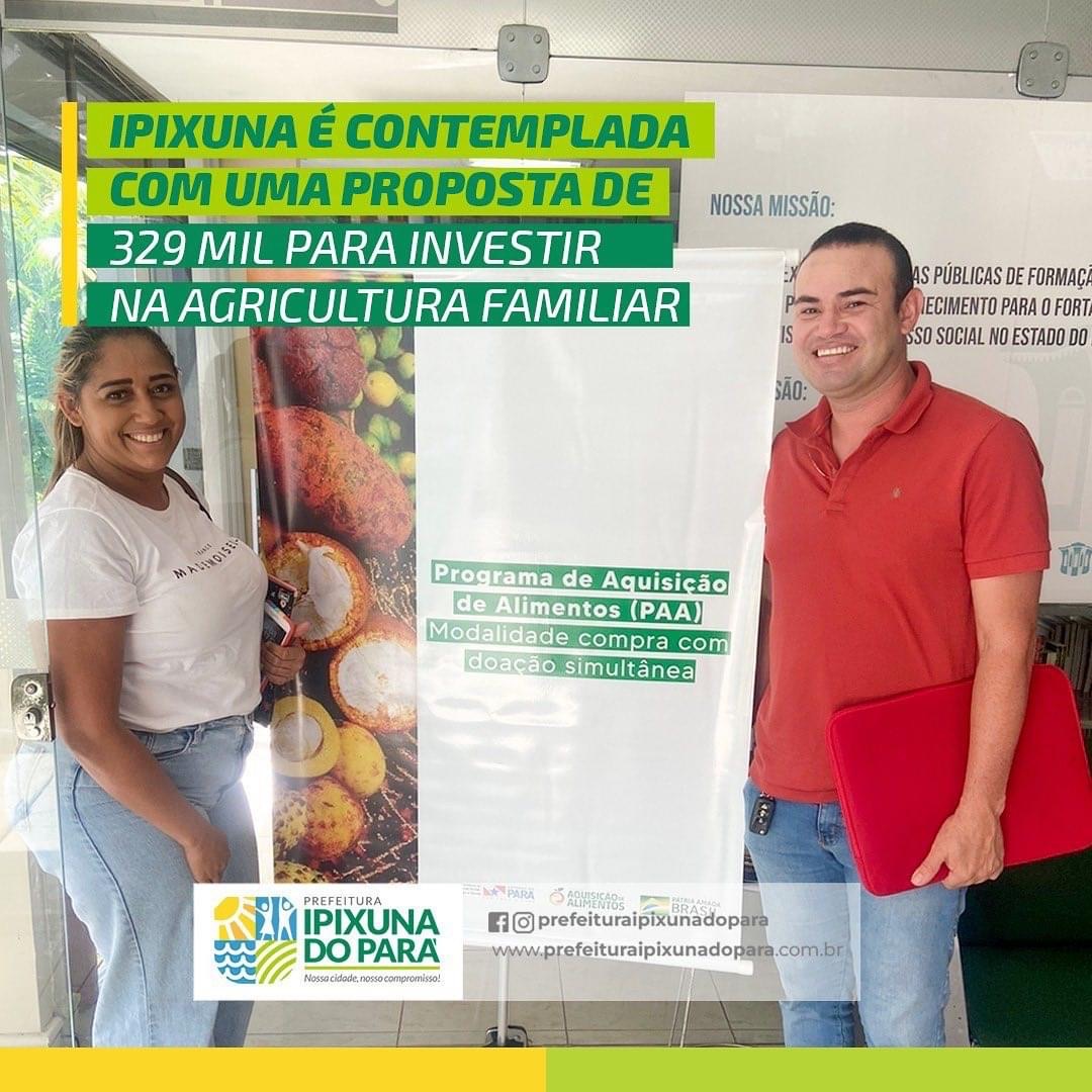 O Município foi contemplado com uma proposta de 329 mil para investir na agricultura familiar, para o Programa Alimenta Brasil, ação realizada pela Secretaria de Assistência através da Prefeitura Municipal de Ipixuna do Pará.
